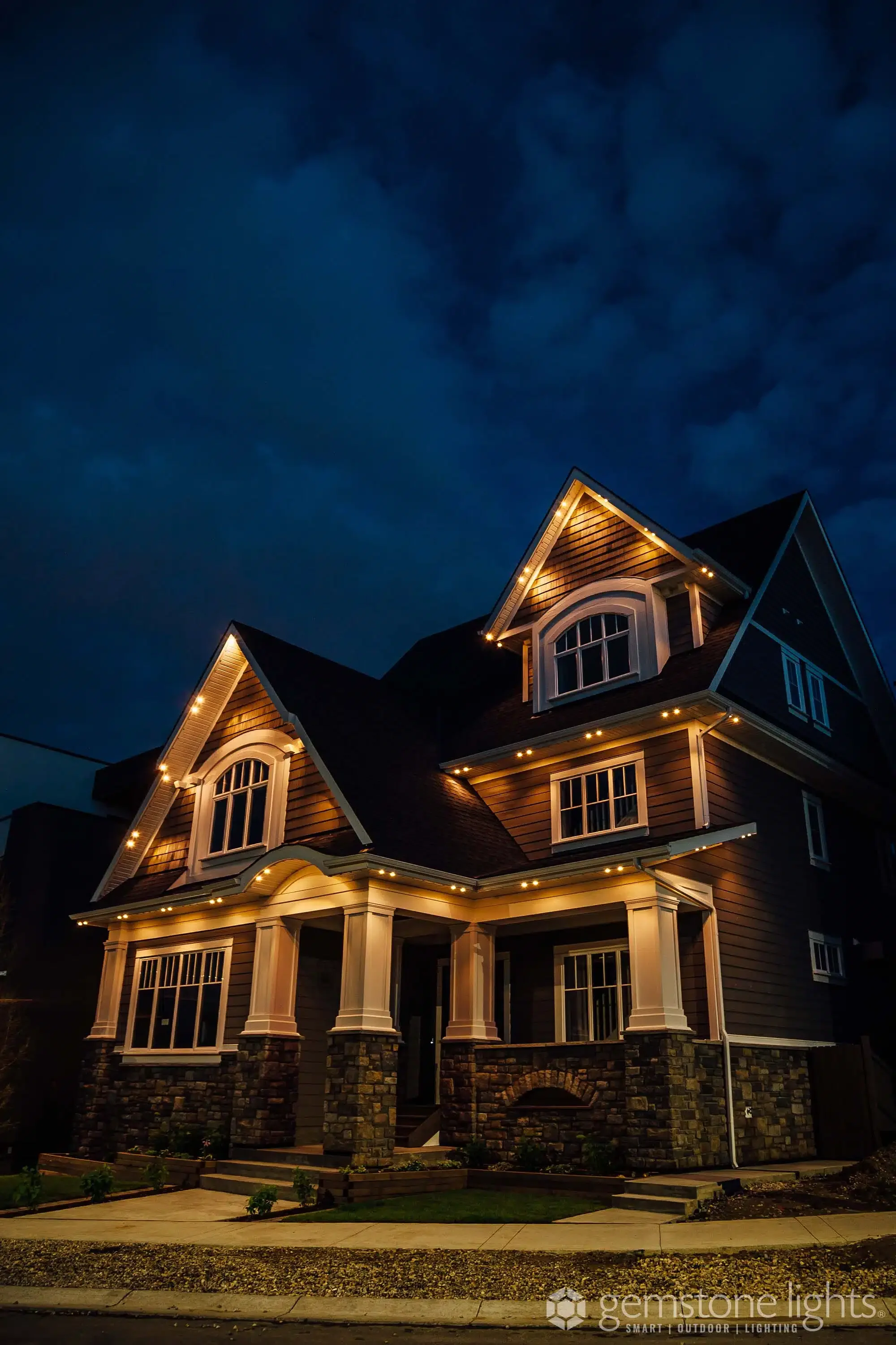 Gemstone Lights are a permanent, app-controlled outdoor lighting system for your home or business. Installed once and built to last, they let you enjoy holiday lights, architectural accents, and year-round ambiance—all at the touch of a button.